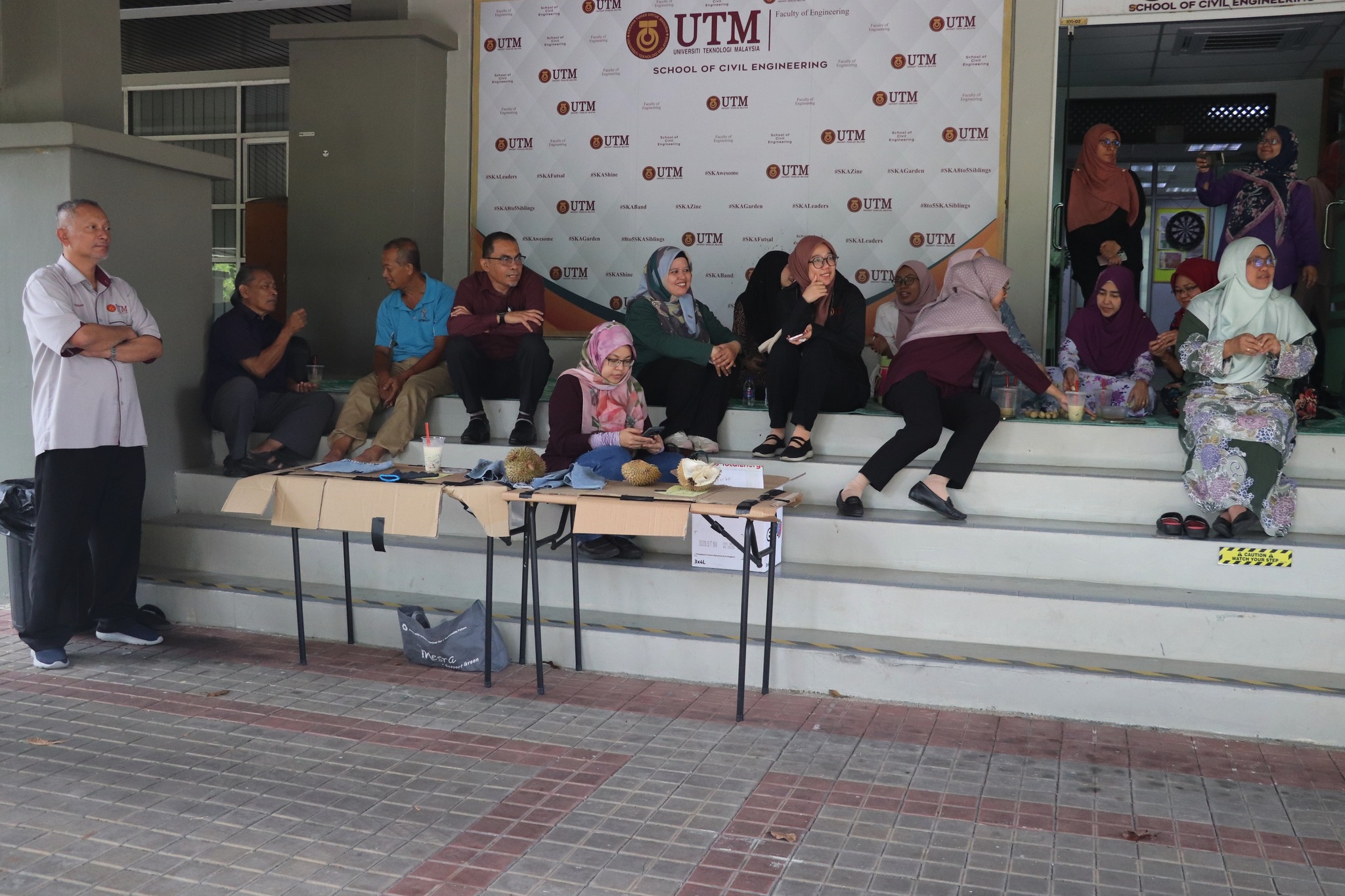 JOHOR BAHRU, 14 Januari 2026 – Tradisi tahunan yang dinanti-nantikan kembali lagi! Kelab Keluarga Fakulti Kejuruteraan Awam (KKFKA) telah berjaya menganjurkan Pesta Makan Durian FKA 2026 bertempat di Foyer M46, Pejabat Pentadbiran FKA. Program yang diadakan seawal jam 10.00 pagi ini telah menghimpunkan seluruh warga fakulti untuk menikmati kelazatan durian berkualiti premium dalam suasana yang penuh ceria.
