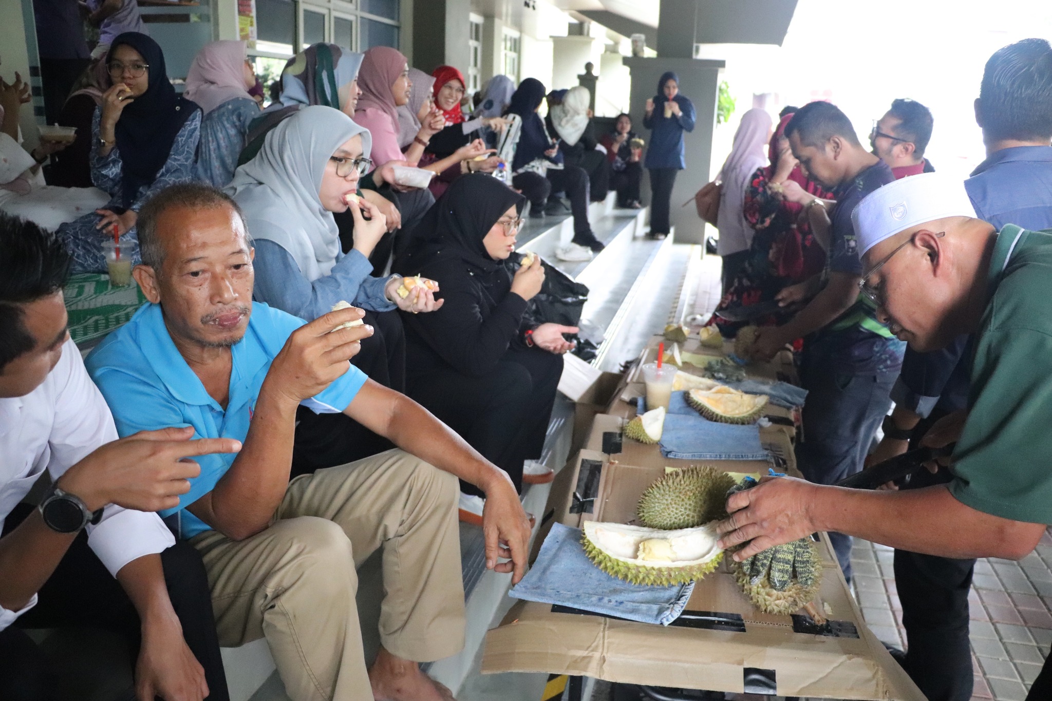 JOHOR BAHRU, 14 Januari 2026 – Tradisi tahunan yang dinanti-nantikan kembali lagi! Kelab Keluarga Fakulti Kejuruteraan Awam (KKFKA) telah berjaya menganjurkan Pesta Makan Durian FKA 2026 bertempat di Foyer M46, Pejabat Pentadbiran FKA. Program yang diadakan seawal jam 10.00 pagi ini telah menghimpunkan seluruh warga fakulti untuk menikmati kelazatan durian berkualiti premium dalam suasana yang penuh ceria.