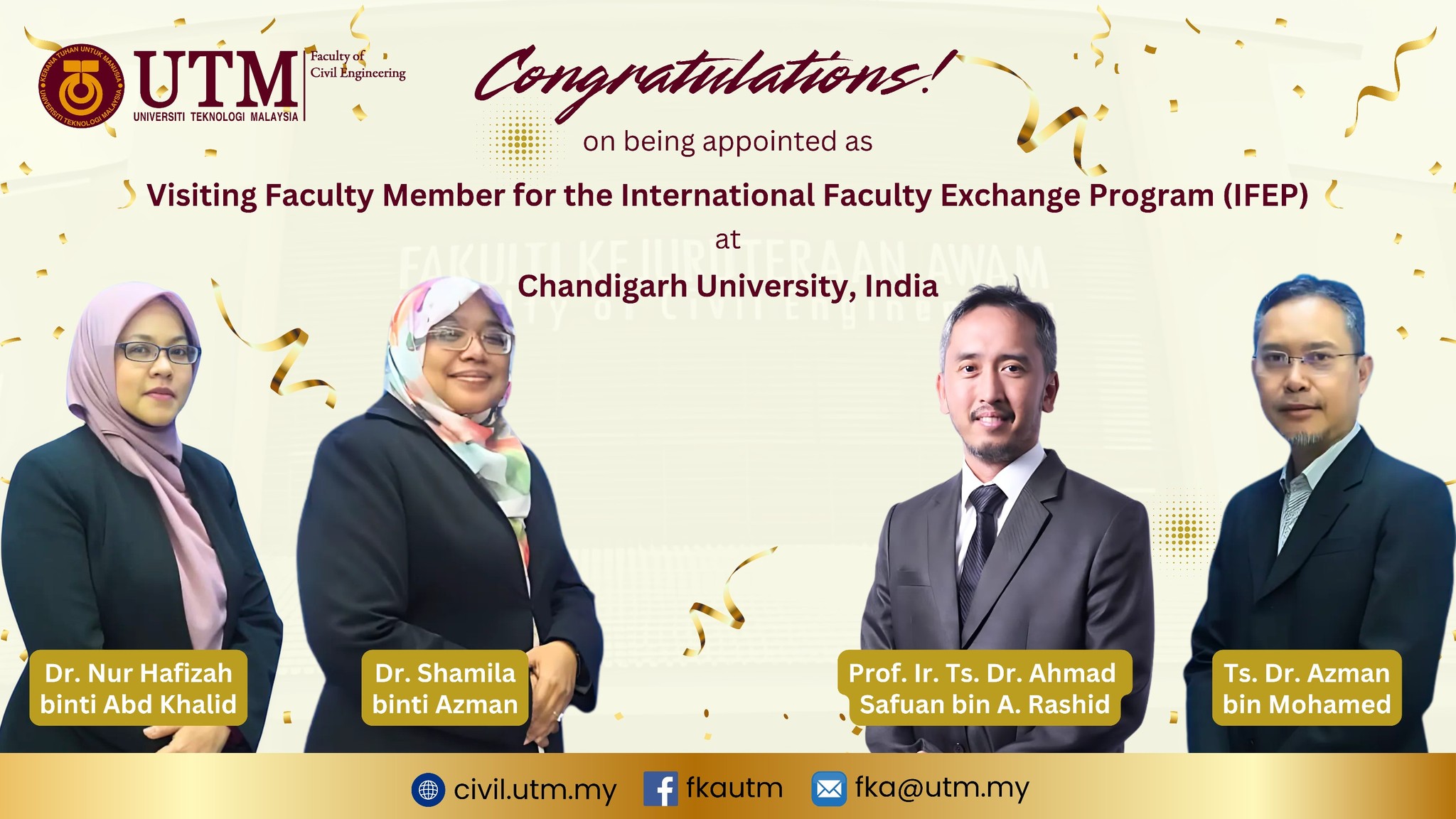 The Faculty of Civil Engineering, Universiti Teknologi Malaysia (UTM) proudly congratulates: