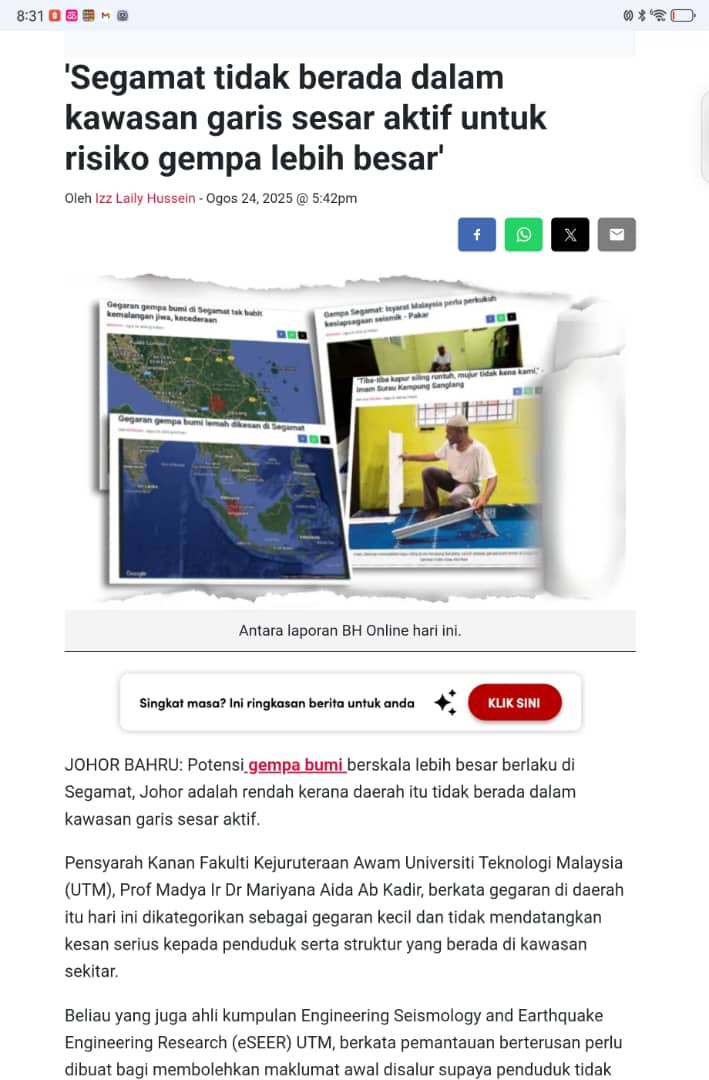 Berita lanjut: https://www.bharian.com.my/berita/nasional/2025/08/1437442/segamat-tidak-berada-dalam-kawasan-garis-sesar-aktif-untuk-risiko#