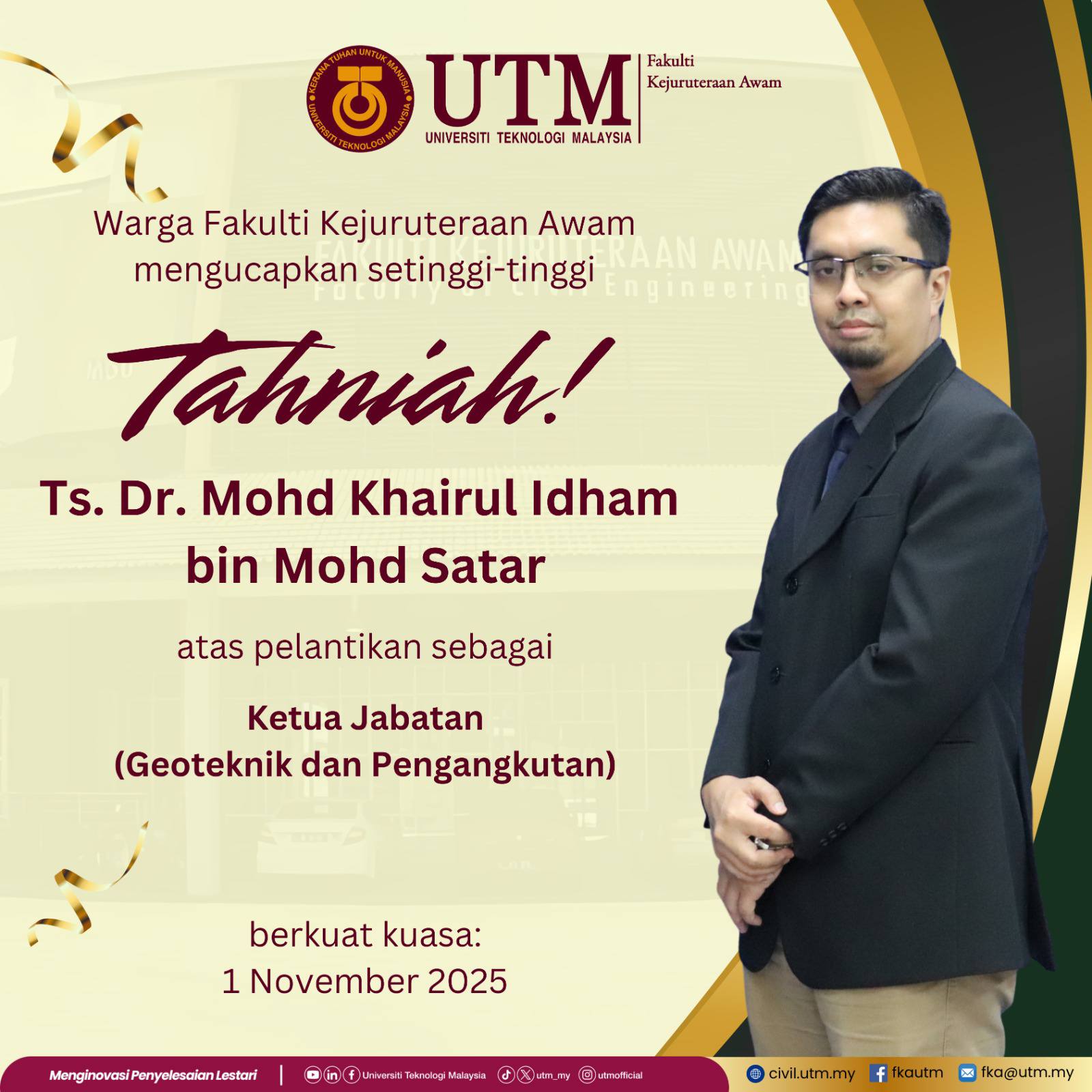 (Geoteknik dan Pengangkutan) , Fakulti Kejuruteraan Awam (FKA) berkuat kuasa 1 November 2025.
